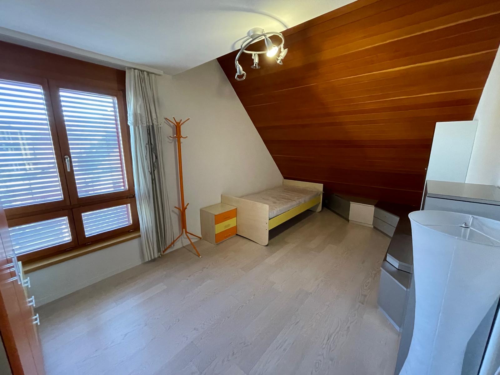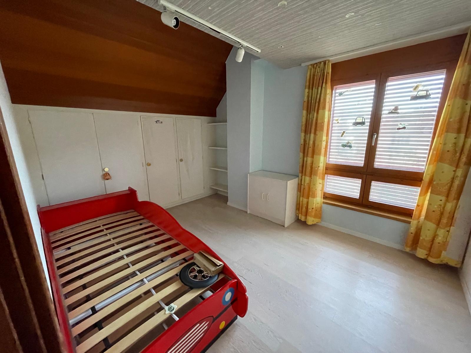 La façade au design singulier attire immédiatement le regard et confère à la maison une identité forte. À l’intérieur, les espaces sont lumineux, bien structurés et offrent une atmosphère contemporaine et chaleureuse.